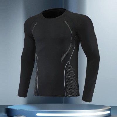 Large size high elastic quick dry sweat sports fitness long sleeve top Autumn winter men's base T-shirt + pants suit