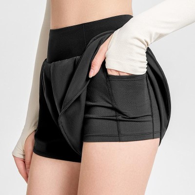 Women's casual sports shorts Extended stretch belt side slit with inner pocket anti-light hot pants summer