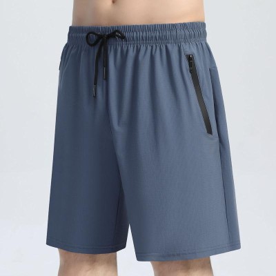 Ice Silk Smooth lightweight quick drying five quarter pants men's elastic waist zipper pocket loose casual medium shorts
