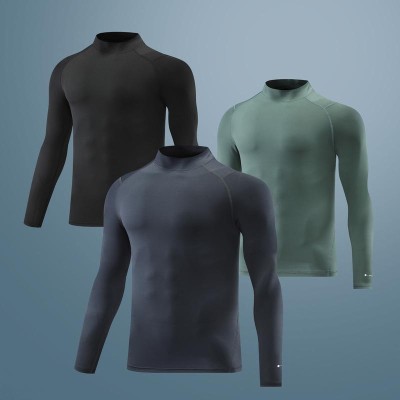 Men's high neck crew neck stretch fitness wear Sports running wear basketball base tights spring summer autumn T-shirt top