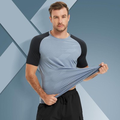 Men's loose striped T-shirt with short sleeved stretch quick-drying blazer