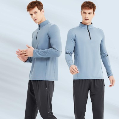 Quick-drying half-open stand collar loose running suit plus-size casual sports fitness shirt and trousers for men and women