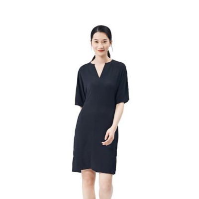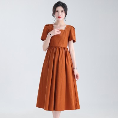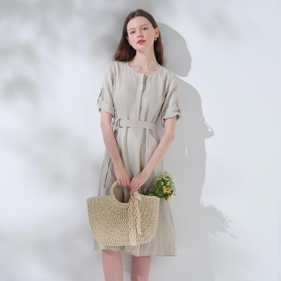 100% linen casual classic crew-neck dress Thin short-sleeved long skirt