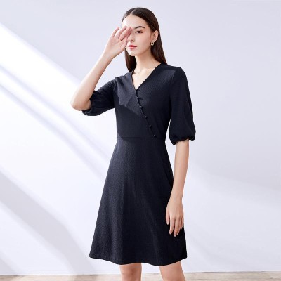 Female spring and autumn sleeved platycodon skirt A-line fashion dress vintage classic V-neck little black dress