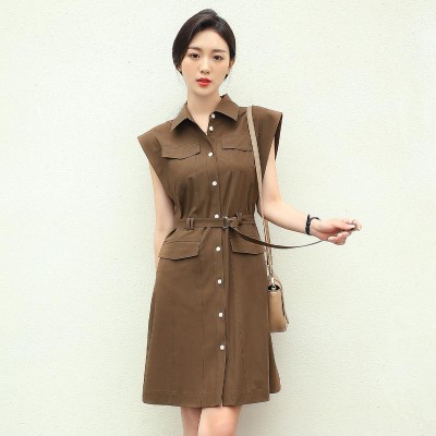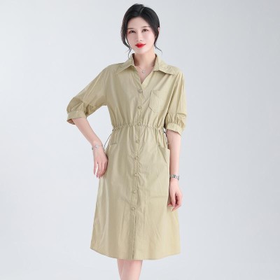 Summer Dress 100% Linen Vintage casual short sleeve dress