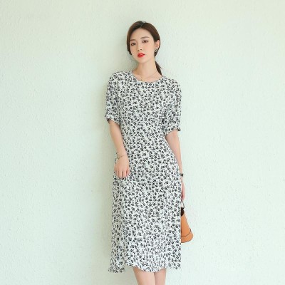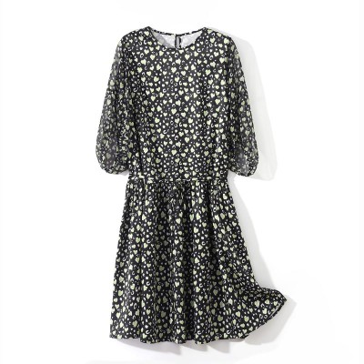 Age-reducing loose casual A-word small floral mid-sleeve dress