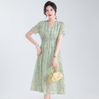 Ladies simple everything with starlight crepe chiffon fabric dress