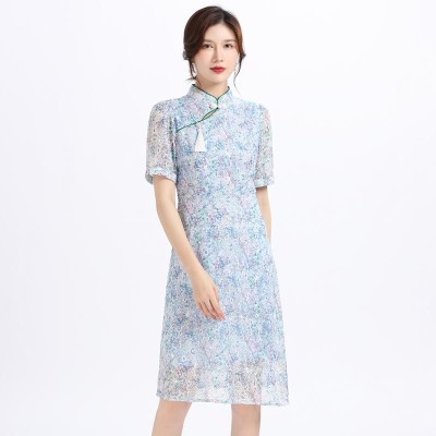 Women spring and summer simple fashion elegant slit cheongsam style long dress
